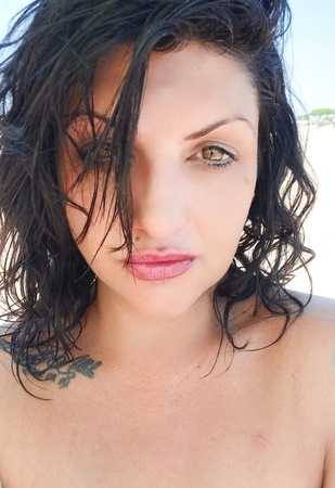 Haare:dunkelbraun, rückenlang, wellig