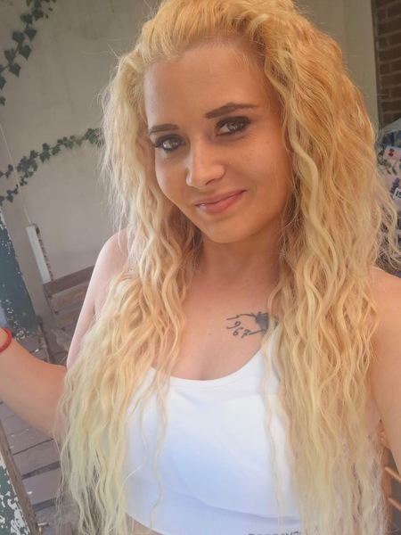 | Haare: | blond, rückenlang, glatt |