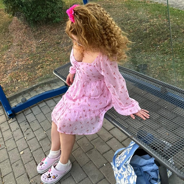 Haare:blond, rückenlang, glatt