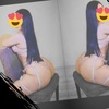Haare:schwarz, rückenlang, glatt