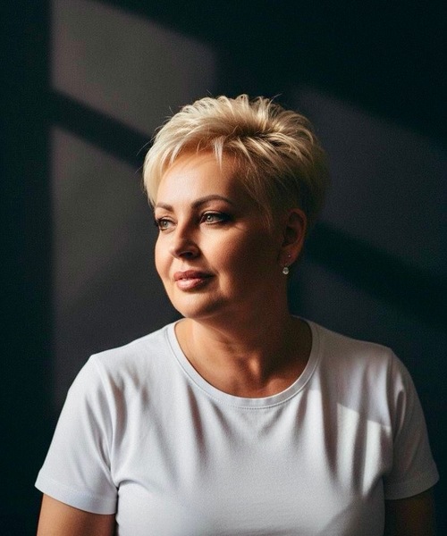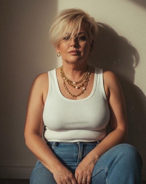 Haare:blond, kinnlang, gelockt