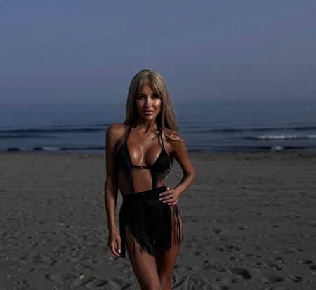 Haare:blond, rückenlang