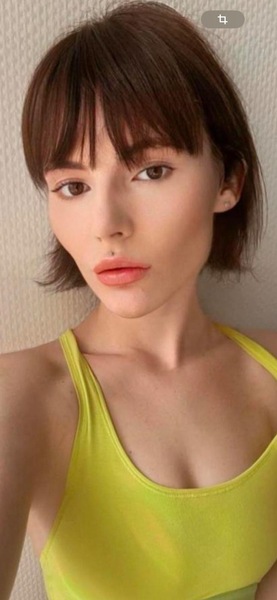 Haare:brünett, kinnlang, glatt