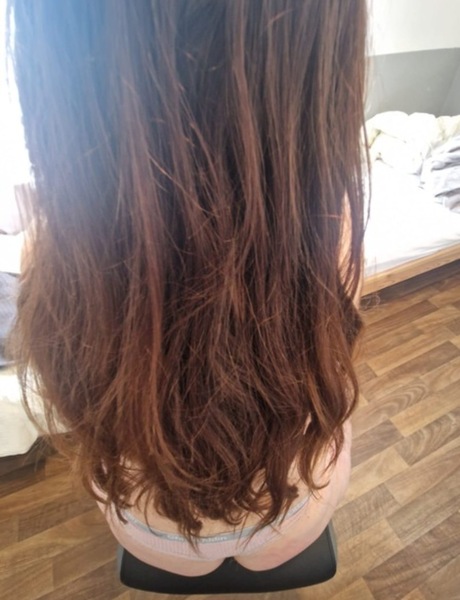 | Haare: | brünett, rückenlang, wellig |