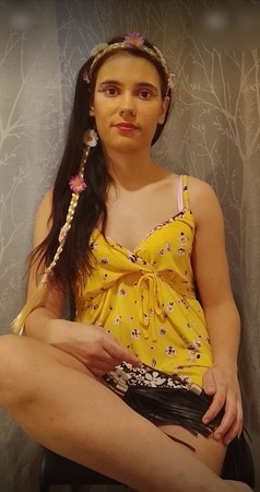 | Haare: | brünett, rückenlang, glatt |
