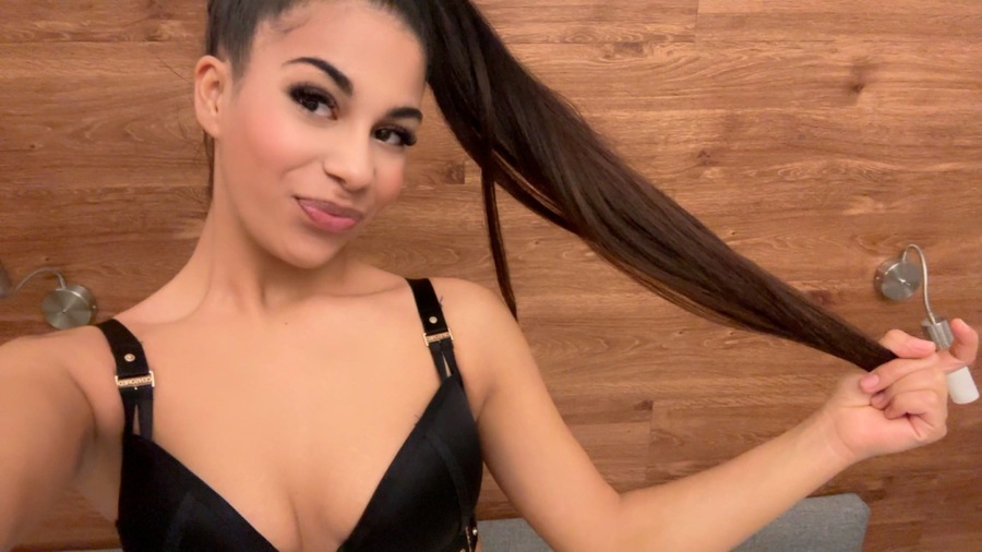 Haare:dunkelbraun, rückenlang, glatt